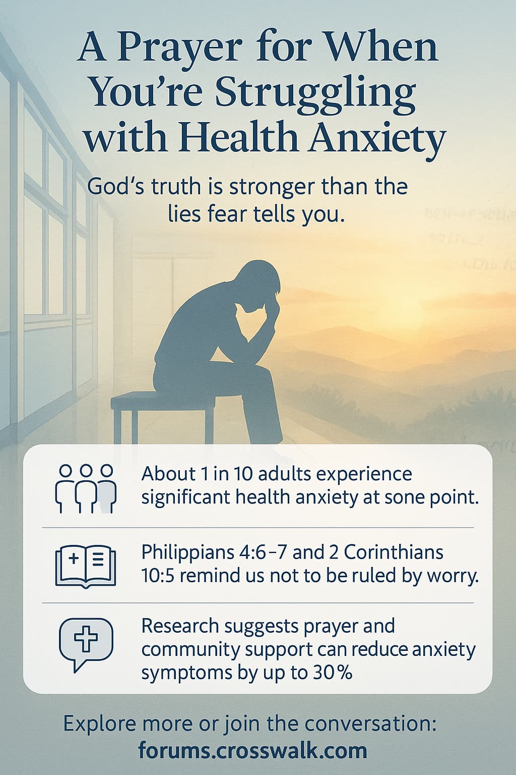 The apostle Paul reminds us in 2 Corinthians 10:5 that we are to “take captive every thought to make it obedient to Christ.” Health anxiety thrives in isolation and secrecy, but healing often begins when we invite others in, seek prayer, and bring our fears into God’s light.