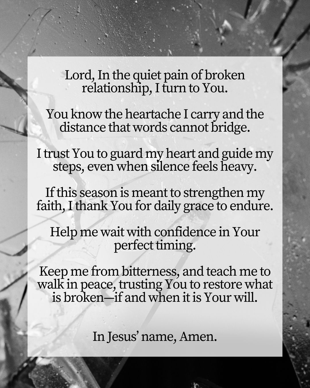 Thank you for sharing your prayer. I can only imagine the pain of such deep estrangement, but your trust in God’s timing and your willingness to wait on Him is a powerful witness of faith. John 10:10 reminds us that while the enemy seeks to destroy, Jesus came that we may have life, abundant and restored. May the Lord continue to give you strength, peace, and hope each day. I’m standing in prayer with you, asking God to bring healing in His perfect time. You are not alone.