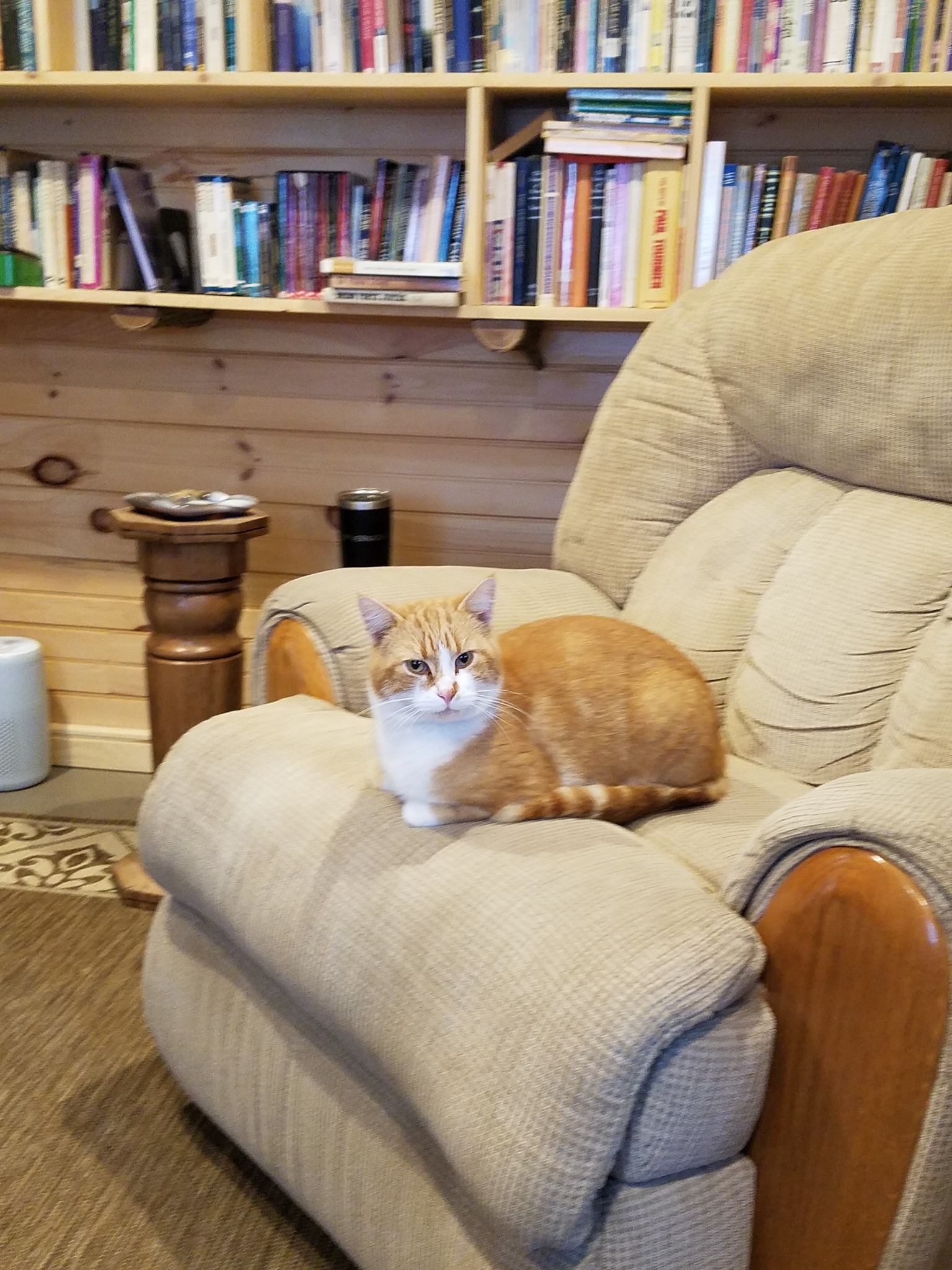 This feral tomcat seems to think I should be honored that he accepts my offerings of food, as he welcomes himself into my study. He has no name, I call him “Mooch” but he prefers I call him “Your Royal Highness”.