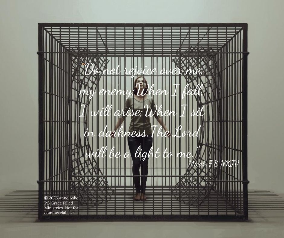 During the years of bondage I was going through in my life, I felt like I was trapped in a cage. The bars on the cage were likened to prison bars. It felt like there was no way out of the bondage I was in. As I moved on in my walk with God, in my heart I saw the “prison walls” fall down from all four corners of my life. God had set me free from every bondage I was ever in.