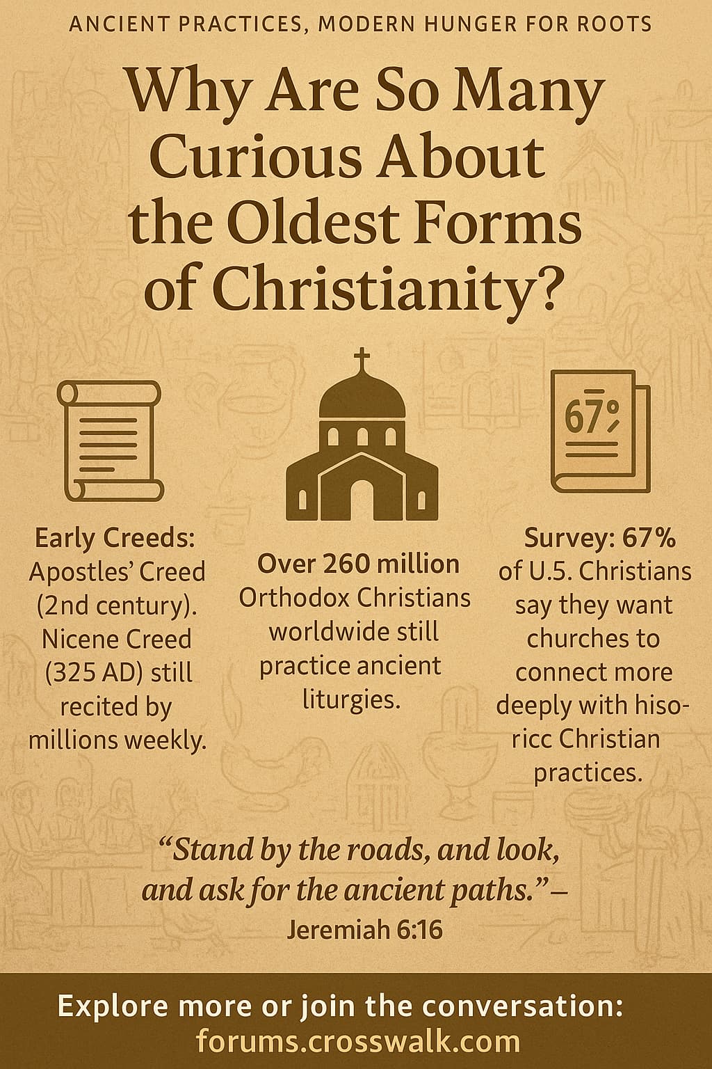 From ancient liturgies to early church fathers, there’s a renewed fascination with how the first Christians worshiped, prayed, and lived out their faith. #EarlyChurch#ChristianTradition#FaithRoots#christianforums#crosswalkforums#forums#crosswalk#faithcommunity#faithforums